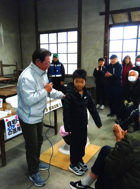 参加住民に対して災害時の自宅トイレ活用法の体験学習を担当しました。